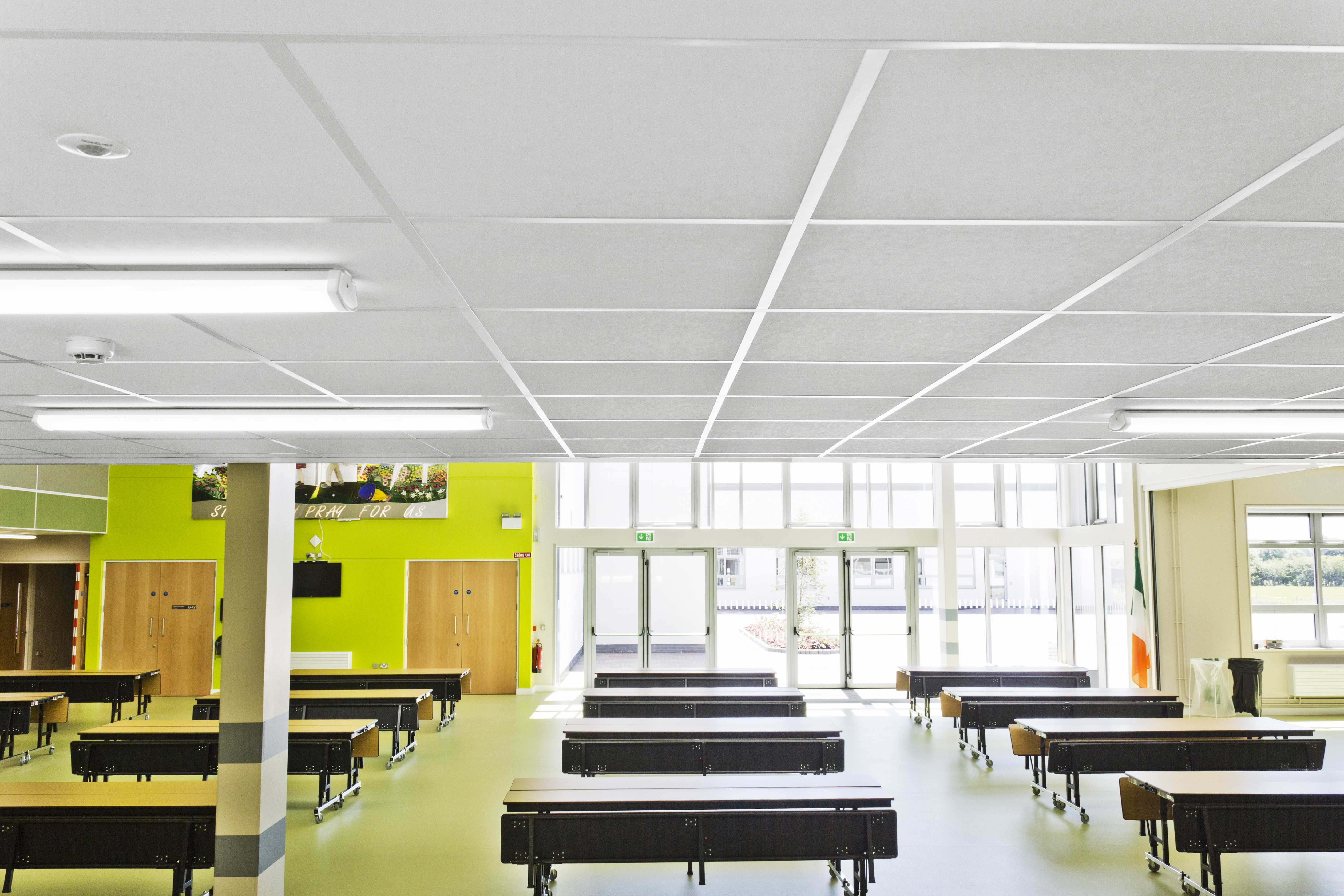 Rockfon® Education Standard delivers good sound absorption (NRC 0.70), ideal for education spaces such as hallway/corridors, teacher lounges, gymnasiums, nurse offices and cafeterias