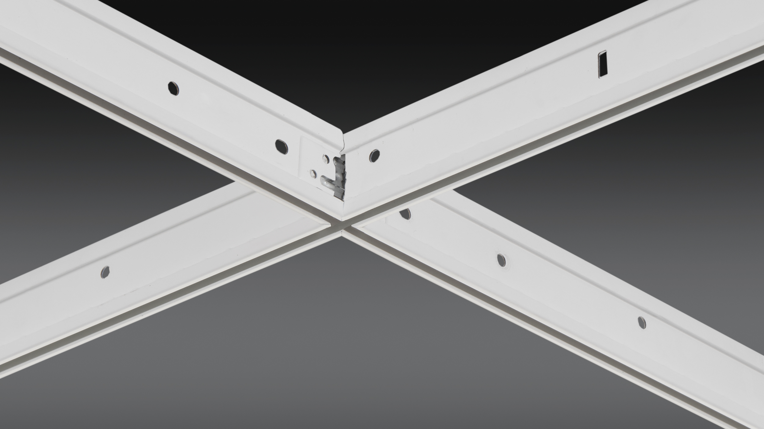 4550 Ultraline™ 9/ 16" Seismically approved stab-end cross tees feature a 1/4" bolt slot reveal with cleanly mitered intersections which result in a flawless and continuous line in the ceiling. Application areas include lobbies, airports, conference rooms and other high end areas.
