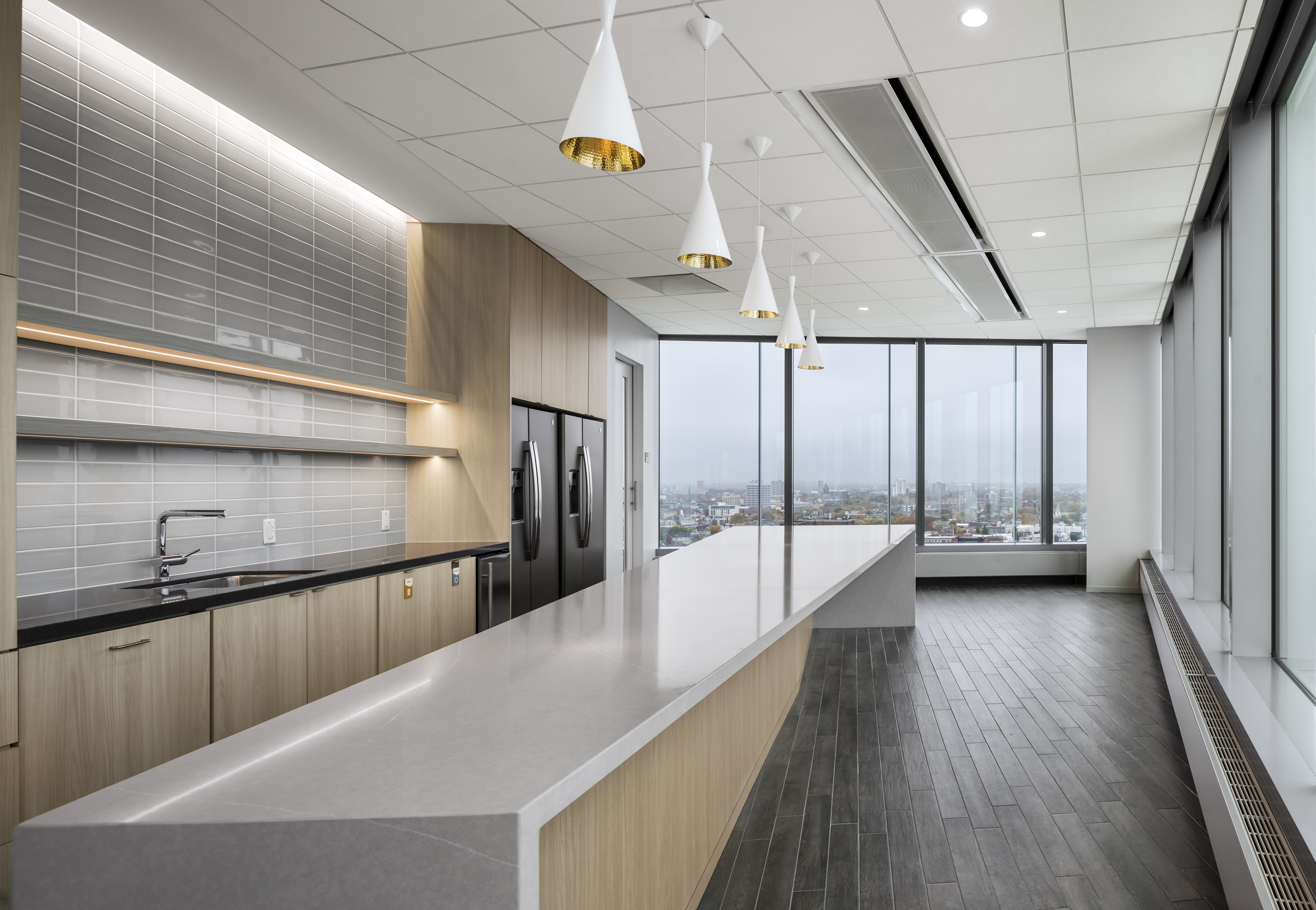 Rockfon® Island™ stone wool frameless acoustical cloud ceiling panels feature excellent sound absorption and offer an innovative and aesthetically-pleasing option for open plenum ceiling designs.