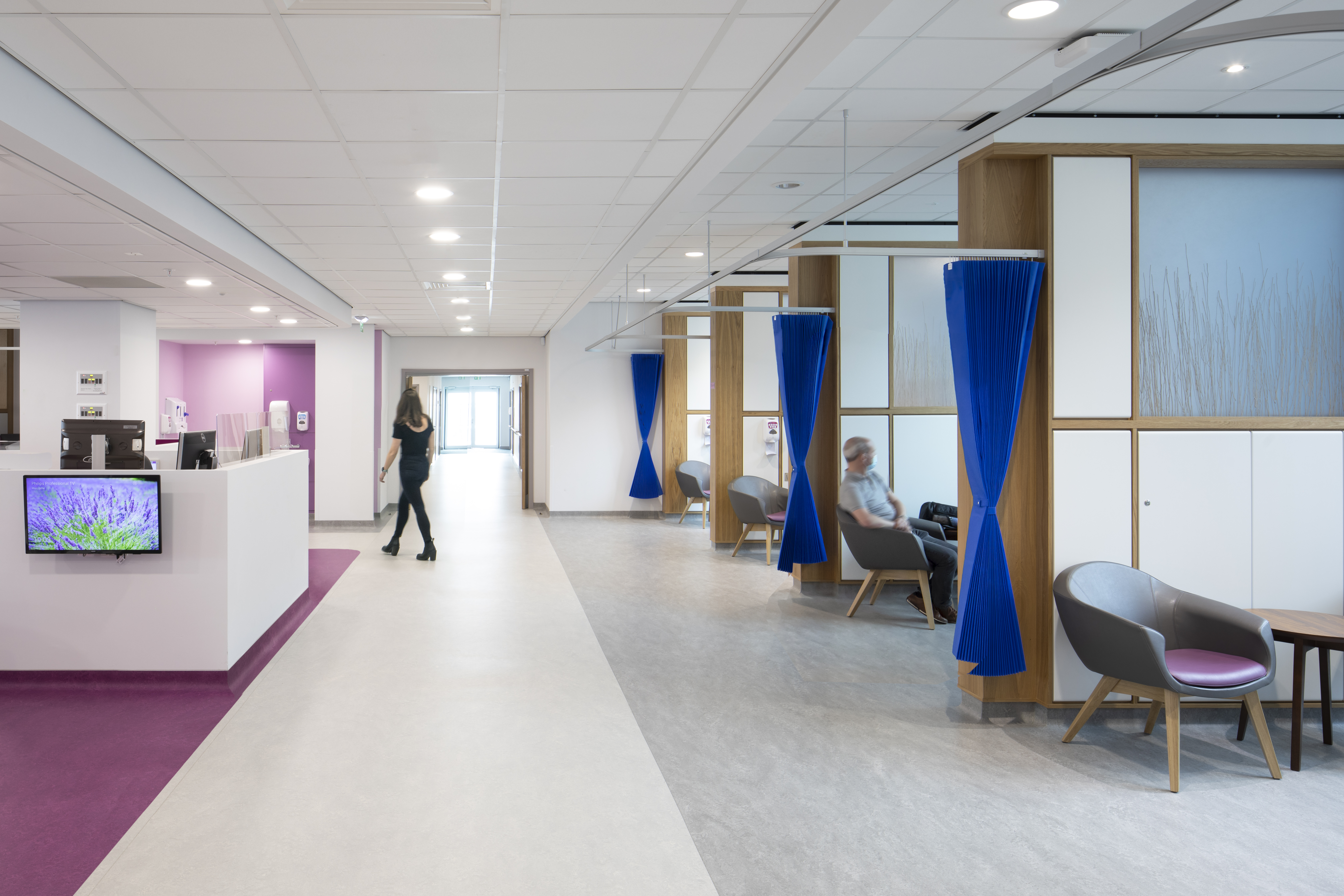 Rockfon® Medical Air™ ceiling tiles provide excellent sound absorption up to NRC 0.85 and CAC up to 35. These tiles meet ISO Class 3 and comply with FGI guidelines meeting the 1PSF requirement for semi-restricted areas.